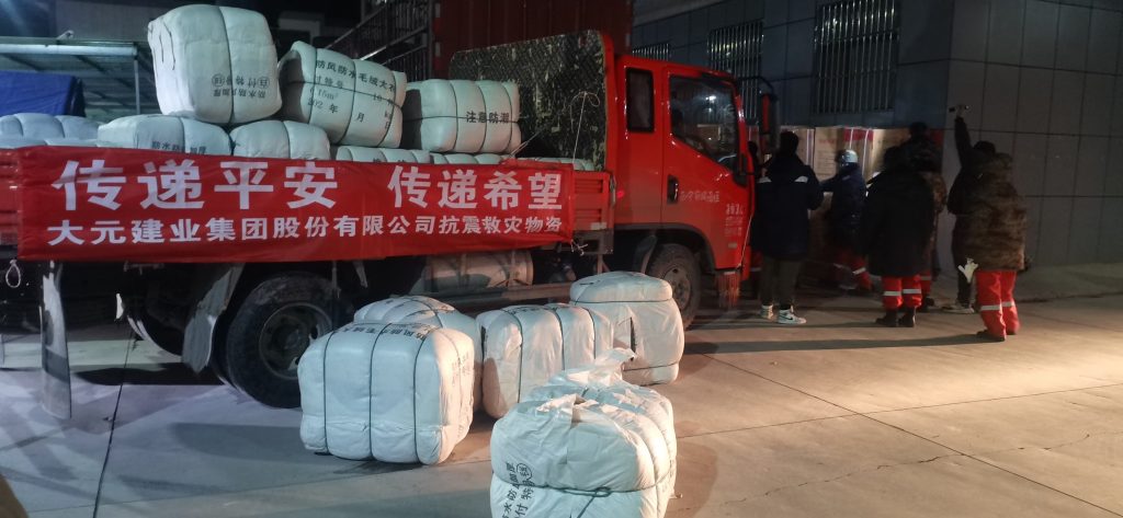 地震无情人有情,2023年12月18日23时59分甘肃临夏州积石山县发生6.2级地震,震源深度10km。与积石山相邻的青海省海东市三个县受灾严重,截至目前造成189人失联、伤亡及部分水、电、交通、通讯等基础设施受损。12月19日上午接到集团董事局李主席指示,青海公司第一时间和灾区政府有关部门取得联系,并紧急采购军大衣、棉被等价值10万元救灾物资,青海公司总经理闫世祥、党支部书记吕宝忠、执行经理赵伟带队送达海东市团委,民和回族土族自治县中川乡等灾区现场。