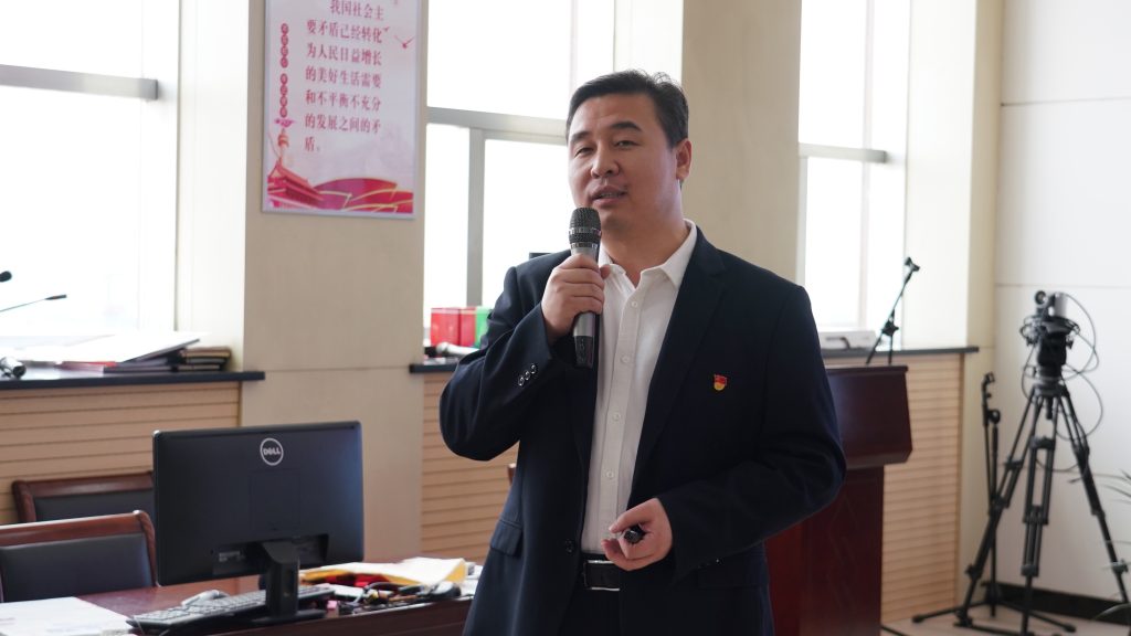 大元集团党委副书记于宙带领学习10月16日大会报告。