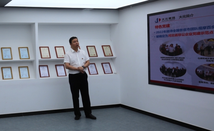 曹书记一行有序参观了大元集团党建实践教育基地,聆听党史故事,重温入党誓词,深切感受革命前辈不怕牺牲、艰苦奋斗的革命精神,体验大元党建与科技创新的深度融合,引导党员干部进一步坚定理想信念,锤炼党性修养,牢记初心使命。
