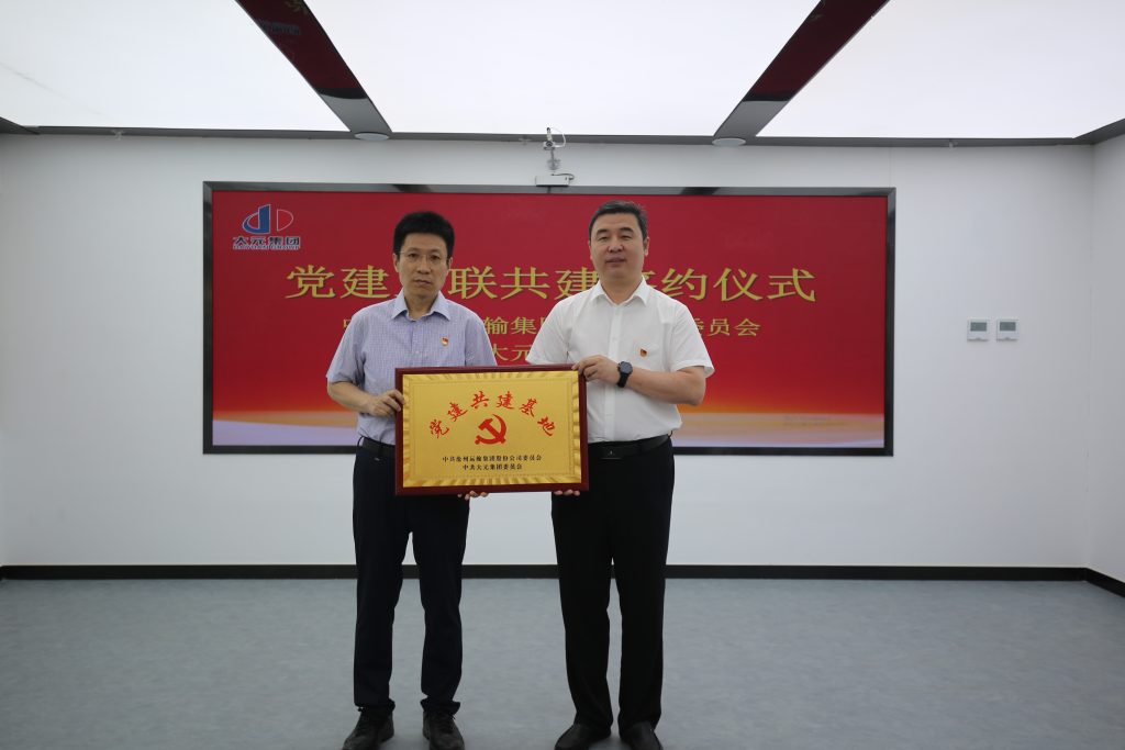 在全体人员的共同见证下,双方正式签订《党建共建协议书》,大元集团党委副书记于宙授牌并赠送《大元传》。