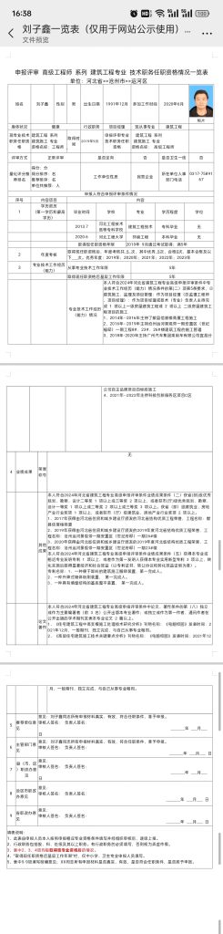 刘子鑫申报评审高级工程师系列建筑工程专业技术职务任职资格情况一览表