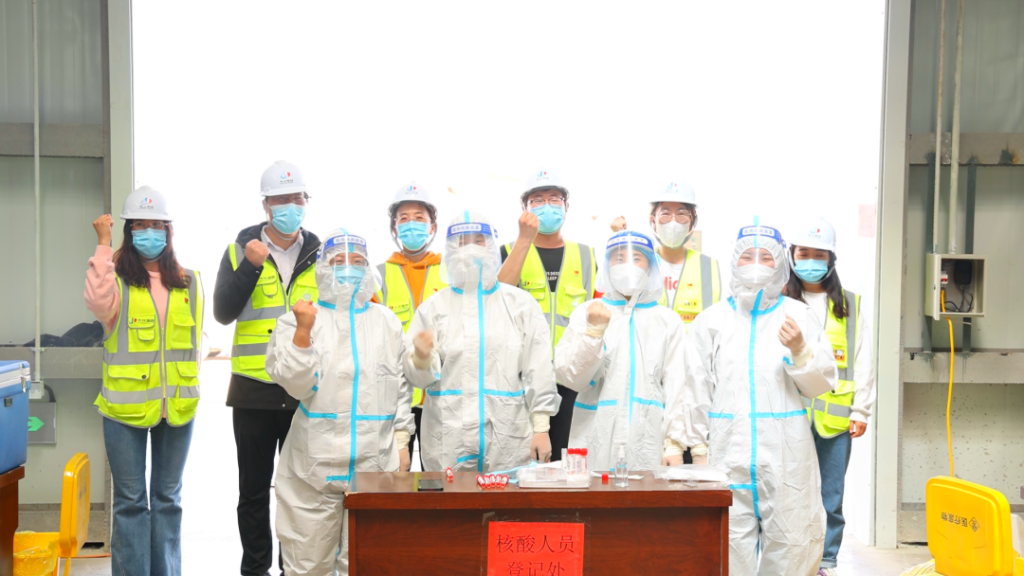 闭环防疫,战疫必胜。大元集团成立防疫小组,对项目现场严格实施封闭管理。每日2次全面消杀,重点区域不少于4次消杀,每日一次全员核酸检测,成立人员登记、秩序维护、核酸确认三个小组,20名志愿者每日协助核酸检测人员1小时内完成现场1000余人核酸检测。
