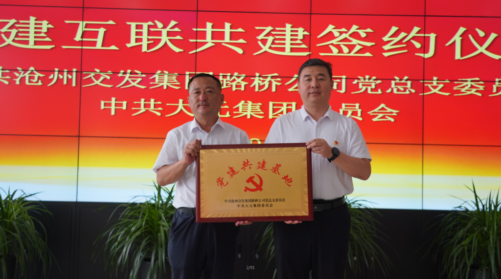 9月1日上午,大元集团与沧州交发集团路桥公司党建共建签约仪式在大元集团总部15楼会议室成功举办。