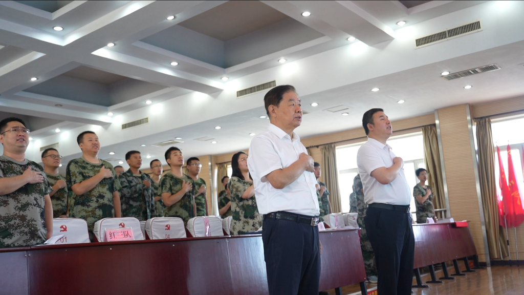 大元集团党委书记、董事局主席李建国为第七期培训班临时党支部书记、培训班班长马阳授班旗。随后,班长马阳为各队队长授队旗。各队亮出口号,并由马阳带领全体学员表态:“请李主席放心,百年大元现代化由我来实现!”