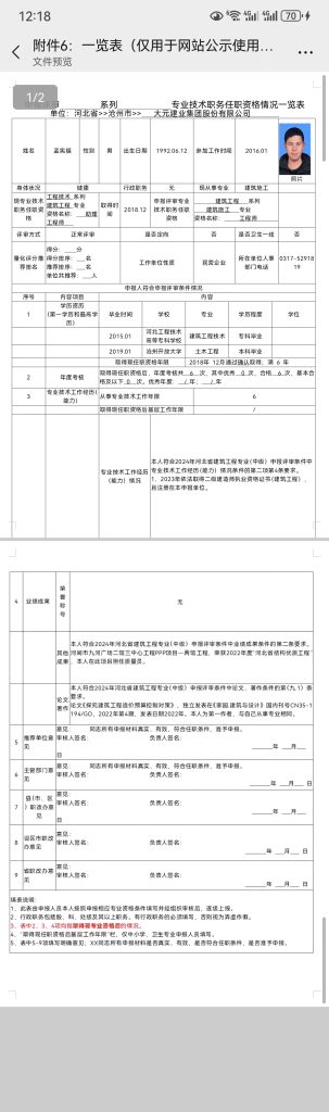 孟宪福申报评审系列专业技术职务任职资格情况一览表