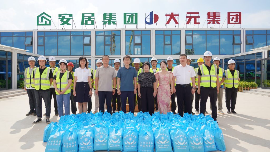 高温慰问送清凉,情系一线暖人心。7月30日,沧州市总工会、沧州市住建局到大元集团总承包公司河北省沧南监狱迁建EPC项目开展“送清凉”慰问活动。市总工会事业发展中心主任李坤霞,事业发展中心副主任毕采钰,市住建局党组成员、副局长袁宏伟,机关党委专职副书记刘辉出席活动,大元集团党委副书记于宙、总承包公司党支部书记王金英热情接待。