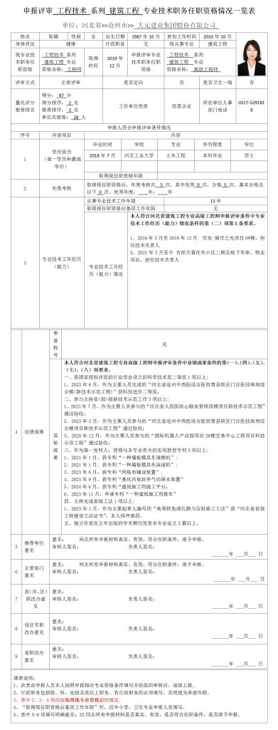 张璐申报评审工程技术系列建筑工程专业技术职务任职资格情况一览表