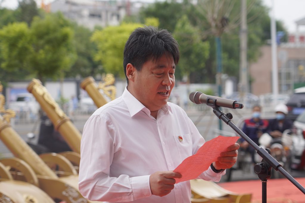 大元集团党委书记、董事局主席李建国宣布5月25日企业日升旗仪式正式开始。