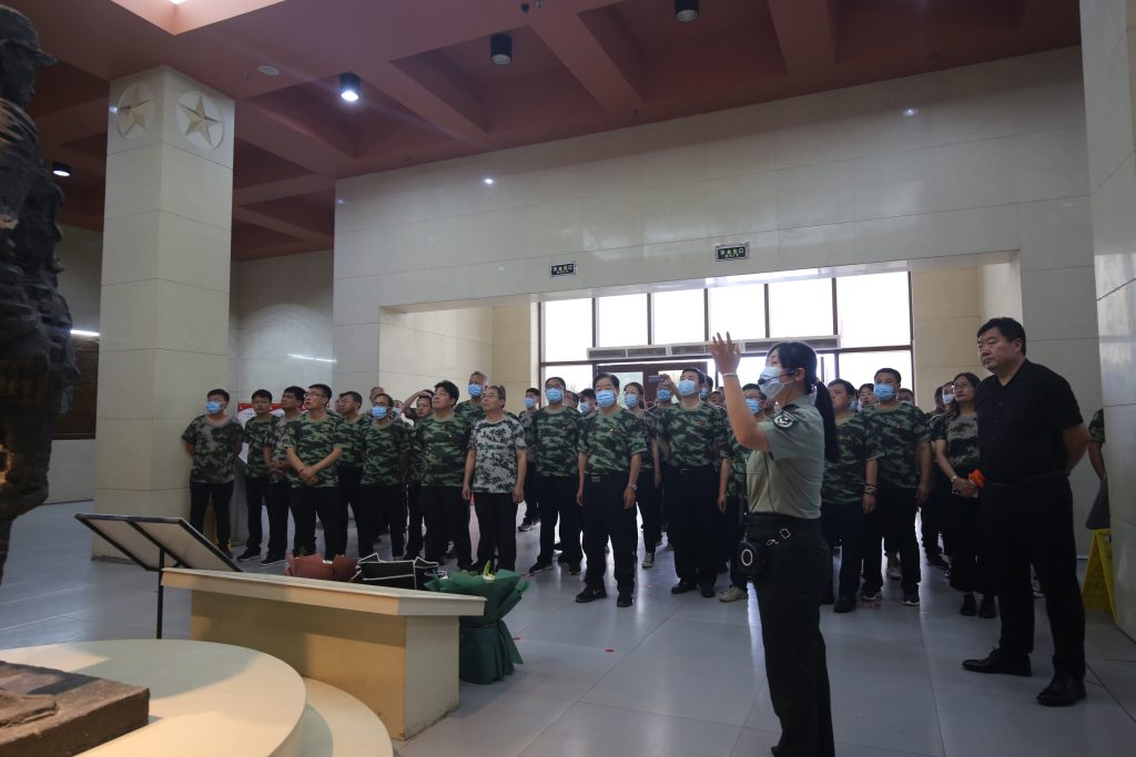 7月3日上午,在李主席的带领下前往马本斋纪念馆。园内正中一座大型汉白玉纪念碑,正面镌刻着毛泽东主席的挽辞:“马本斋同志不死”。走进纪念馆展厅,一幅幅记录着冀中军民抗战历史的老照片,一件件充满年代沧桑的实物,生动地再现了抗日民族英雄马本斋及回民支队,奋勇杀敌的壮烈场面。参观前,由集团党委副书记于宙带领全体参加人员重温入党誓词。