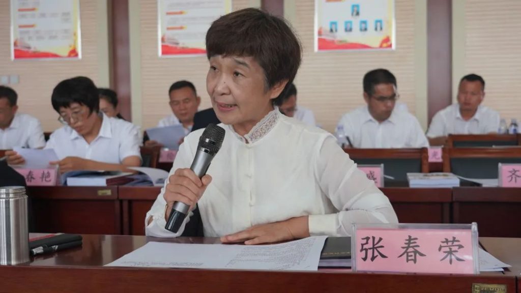 大元集团副总裁、工会主席张春荣通报集团上半年考核结果。
