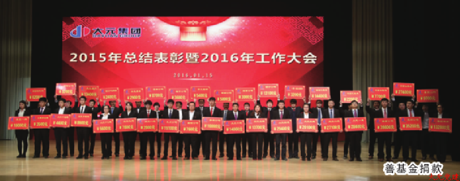 善基金 2013年,举行大元善基金启动仪式 2014年,大元集团旗下40余家单位和个人现场捐款200余万元 2015年,集团各级干部职工为善基金注入善款556100元 2016年,集团各级干部职工为善基金注入善款550000元 2017年,集团各级干部职工为善基金注入善款630000元 2018年,集团各级干部职工为善基金注入善款704150元 2019年,集团各级干部职工为善基金注入善款648500元 2020年,集团各级干部职工为善基金注入善款640400元 2021年,集团各级干部职工为善基金注入善款681250元 2022年,集团各级干部职工为善基金注入善款688950元